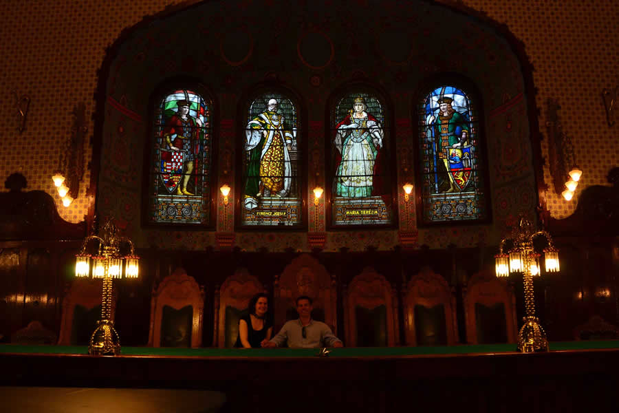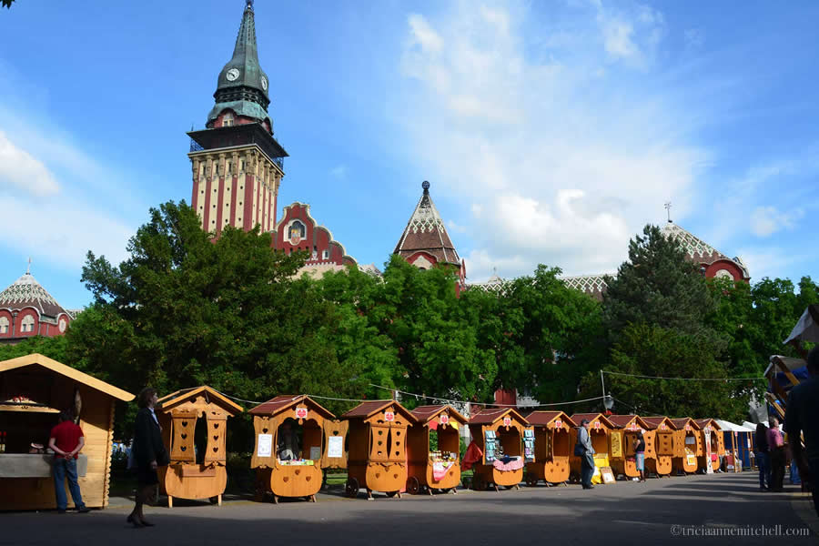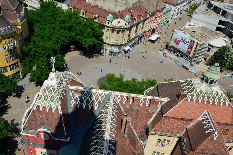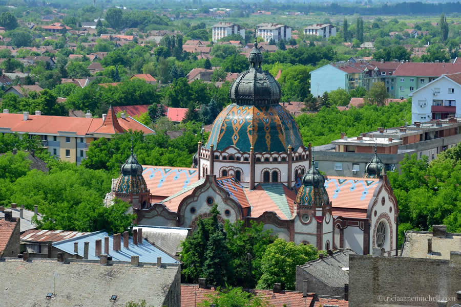 The roof tiles of Subotica’s City Hall.Details of Subotica’s City Hall building (Gradska kuća), which was built between 1908 – 1912. Levy, one of Subotica’s tourist office employees, was kind enough to give us a mini tour of the grand building. We climbed to the top of the town hall’s tower and also explored the ornate chamber where Subotica’s City Assembly meets.In 1906, a competition was held, inviting architects to submit proposals for Subotica’s future Town Hall building. Architects Marcell Komor and Dezső Jakab were eventually selected to design the building, and construction began in 1908 (as seen in this coat of arms on the right). In the picture on the left is the observation tower where we ascended. It offers splendid views of Subotica’s Old Town core.Left: The intricate tiled rooftops of the city hall. Right: A gargoyle-like figure contrasts with the building’s colorful façade.Views of Subotica’s Main Square (Trg Slobode) from the top of the City Hall.Subotica’s Synagogue, which is currently undergoing restoration. It was designed by the same architectural duo that created the City Hall.Wrought iron-work encases the city hall’s observation deck, lending lovely silhouettes.Left: A bird’s eye view of Subotica’s ‘Blue Fountain’, which was installed in 2001. Right: The 18th-century Franciscan Church.These stunning, jewel-toned stained glass windows were made by the same craftsmen who fashioned the stained glass in Budapest’s Parliament Building.Mood lighting inside the building’s elegant Council Hall.Street signs and tourist markers in Subotica’s center are written in several languages: Serbian, Hungarian, and sometimes English. Here, they use both the Latin and Cyrillic alphabets.Shawn enjoys another aerial view of the city.Subotica is replete with Art Nouveau beauties. These decorative frosting-like details are on the former Subotica Savings Bank.A beehive adorns the top of this former bank; the symbol is said to represent thrift and good financial management.Colorful panels dress up an otherwise drab construction site.Left: A suitcase finds new life as a planter. Right: A sea of green details.Left: Shawn poses next to an Old World-style advertising column. Right: A quirky brass statue rises from a manhole.Though Shawn enjoyed his fair share of Burek in Croatia, he didn’t get to try it here in Subotica. We heard this place has tasty versions of the savory pastry, which can be stuffed with everything from cheese and spinach to minced meat.Left: This tiny grey chapel was built after the Plague ravaged the city. Right: The fanciful architecture that abounds in Subotica’s Old Town-core.Formerly a popular hotel and restaurant (the Golden Lamb Hotel), this building was actually built in the 20th century, in a similar style to its 19th-century predecessor. I liked its cheery heart and flower motifs.Symmetrical and colorful ceramic-work, making me feel as though I was looking through an Art Nouveau-style kaleidoscope.A small market was taking place during our visit, with vendors selling everything from honey and handmade textiles to soap, wine, and liqueur.At the market, we were introduced to Sofi, a natural brand of soap and essential oils. The company’s founders, pictured here, spoke English very well and were happy to answer our questions. Shawn and I purchased handmade soap, as well as lavender and clove essential oils. Later, when we’d moved on to Serbia’s capital city, Belgrade, we were excited to see Sofi products for sale in a design district there.Serbian-American Nikola Tesla appears on the country’s 100-dinar bill. Tesla was a brilliant inventor and engineer. In Belgrade, where we traveled after visiting Subotica, there’s a wonderful museum dedicated to Tesla, where you can see some of his inventions at work.These little motorized vehicles were popular in parks in Serbia. Here, a young boy motors past busts of the architects who designed Subotica’s City Hall and Synagogue.The Blue Fountain.The Baroque-style Cathedral of St. Theresa of Avila was built in the 1770s, when Subotica was part of the Habsburg Empire.Subotica’s old synagogue is the third largest in world in the world, in terms of its seating capacity. It opened in 1902. Its dome features Zsolnay-glazed roof tiles.The synagogue’s vibrant stained glass windows were made in Budapest.Since the synagogue has fallen into disrepair, organizations are trying to raise a few million euros to restore it. As Subotica no longer has a sizable Jewish population, the structure might be used as a concert venue or museum.Left: A stenciled hallway. Right: Folk-art themes are evident on a wooden bench.Posing with Shawn (right) and our host extraordinaire, Levy, from Subotica’s tourist office (left). Levy was previously a member of Parliament. He speaks Serbian, Hungarian, and English, plus a smattering of German.Today, this elegant building hosts a modern art gallery, but it was previously a family home and office, built by architect Ferenc Raichle.Left: A bust of Ferenc Raichle. Right: The detail of his former home and office.A statue depicting Dezső Kosztolányi, a Hungarian writer and poet, who also wrote haiku (Japanese poetry).The city’s Monument to the Victims of Fascism.The detail of a copper relief on the monument.