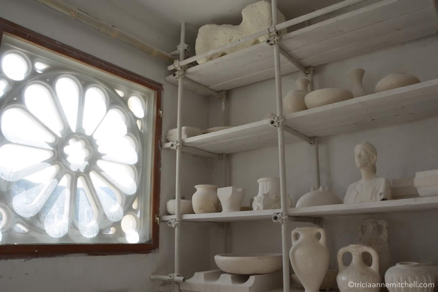 The students choose between three and four-year tracks, with one path leading them to become stonemason technicians, and another preparing them to be stonemasons. There’s even a dormitory and traditional classrooms inside the complex – spaces that Shawn and I accidentally discovered as we navigated the building in search of the main entrance.