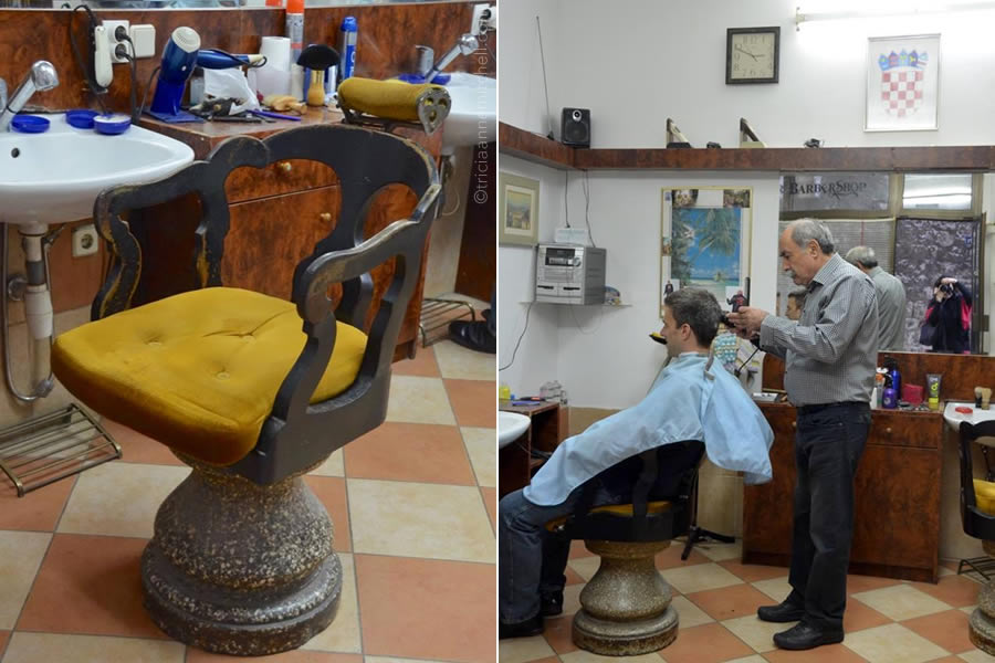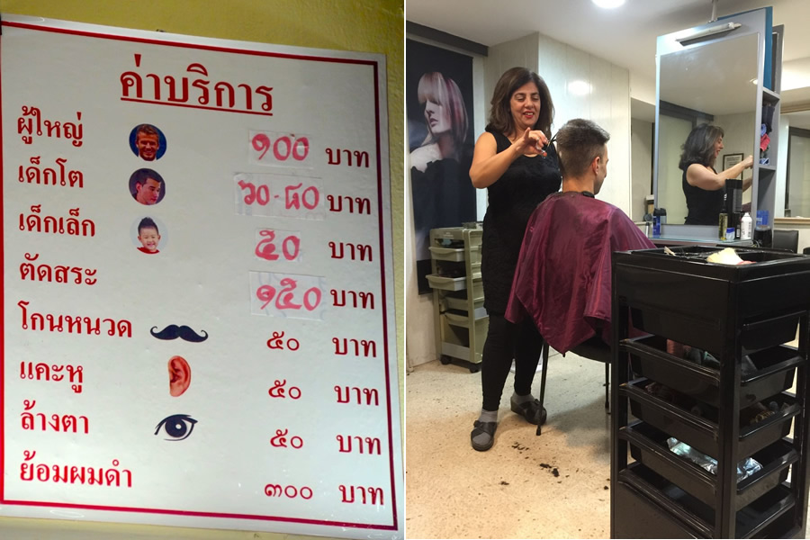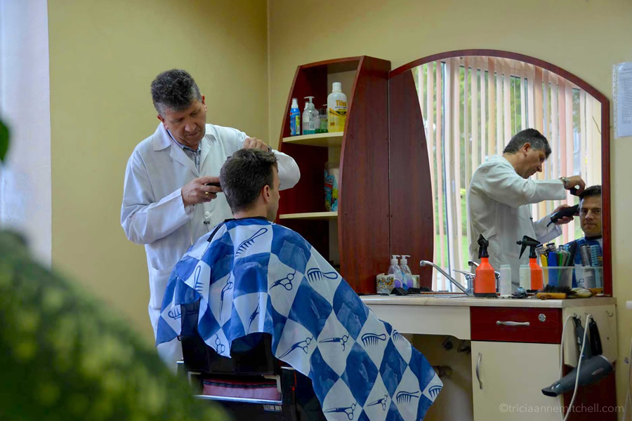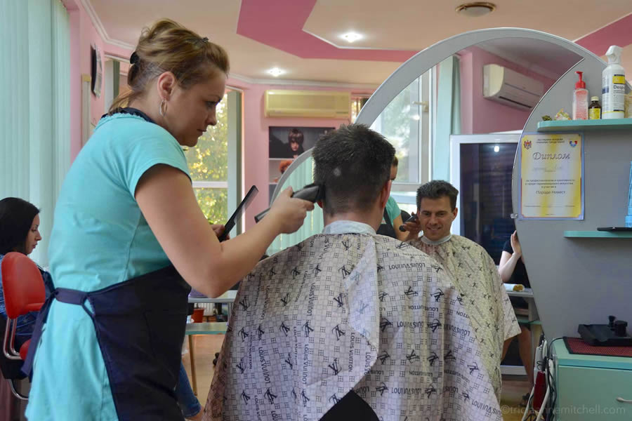 Bangkok, Thailand.Veliko Tarnovo, Bulgaria. Shawn’s haircut here was excellent! This came as a relief because our train journey to Veliko Turnovo from the tiny town of Kalofer had been considerably more eventful. On a rather remote pass, the train unexpectedly stopped on the tracks. It was pitch black, and through our open window all we could hear were a symphony of crickets and a nearby stream. Moments later, a massive firework-like cluster of electrical sparks lit up the dark. It felt like the sparks were going to fly through the open window. A few minutes passed and we were on our way. It all happened on our anniversary, igniting a few more sparks in our marriage. :)Split, Croatia, just footsteps away from the incredible palace ruins of the Roman emperor, Diocletian.Split, Croatia. The stylist told us that these vintage barber stools (left) are likely 80 years old. I think the mustard-hued seats and the headrest are mohair.Chiang Mai, Thailand.Prices in Chiang Mai.Chiang Mai, Thailand services and prices (left) and a salon in Valletta, Malta (right). Since we called the Maltese capital home for one year, Shawn went to this kind stylist, Denise, for regular trims. She nicknamed him “Mr. California.”Novi Sad, Serbia (left), and Pula, Croatia (right). In Pula, we were wowed by the stylist’s grasp of English. As she snipped Shawn’s hair, she explained how she’d perfected her language skills by watching American TV shows like Friends and CSI. Her perfect posture was a dead giveaway that she was a dancer, and so it wasn’t surprising when she proudly shared how she participates in a traditional Croatian dance group.Sarajevo, Bosnia-Herzegovina. After Shawn’s cut, we stopped into a shop in the city’s famous Baščaršija district to buy lokum, gelatinous cubed treats also known as Turkish Delights. Our visit to Sarajevo coincided with the 100th anniversary of the assassination of Archduke Franz Ferdinand, said to be the event that sparked World War I.Tagbilaran, Philippines.Cahul, Moldova. Often touted as one of Europe’s least-visited countries, we spent about three wonderful weeks here. Moldova produces some excellent wine, and it is a former Soviet republic.Kotor, Montenegro. Pretty Kotor is known for its dramatic fortifications, which wrap around the hillside above the town.Hoi An, Vietnam. By night, the city is aglow with stunning handmade lanterns.Fort Kochi, India, a pleasant gateway to Kerala’s famed backwaters, and a town where Shawn and I played dress-up with the locals.Bangkok, Thailand.Lviv, Ukraine. A Ukrainian customer who happened to be in the salon helped translate our haircut preferences. This was the day before we rescued a kitten from a Lviv dumpster. We’d eventually travel 1,000 km (600 miles) with Cocoa the kitten, before he was eventually adopted by Claudine, a blog reader in Switzerland who has since become a special friend.Santorini, Greece. Visiting the celebrated island in the spring months, we found this wonderful salon by chance as we were lugging groceries back to our apartment.Split, Croatia. In the Mediterranean, barber shops, cafés, and bocce ball courts are popular spots for what I’ve dubbed man conventions, or “man-ventions”. :)