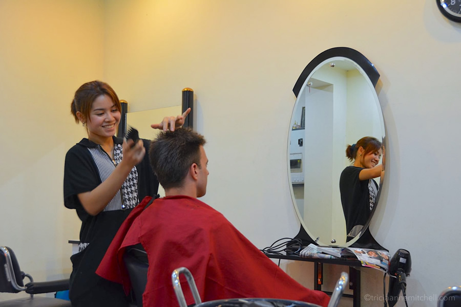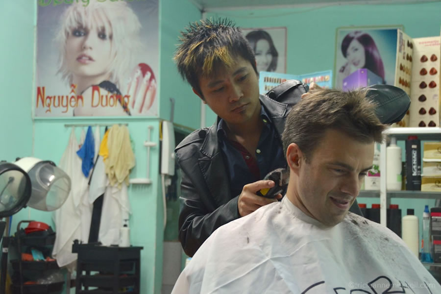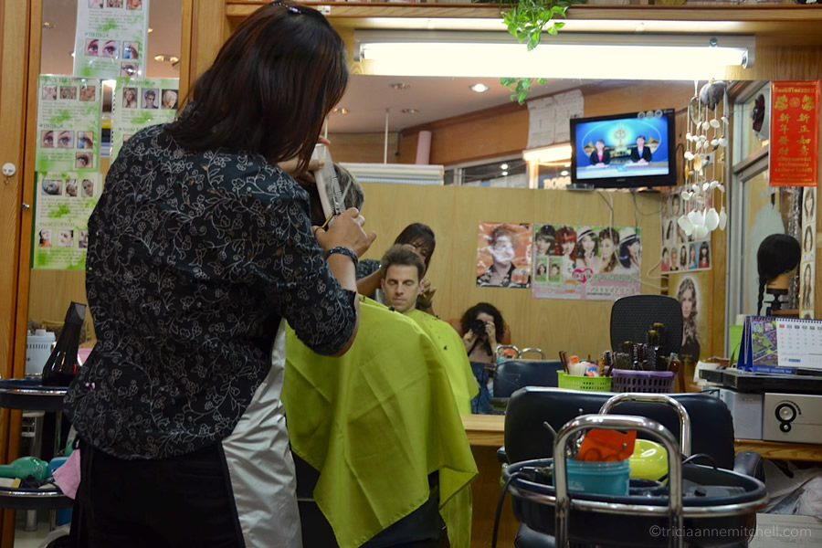 This funny encounter got me reminiscing about all the haircuts Shawn and I have had around the world.
