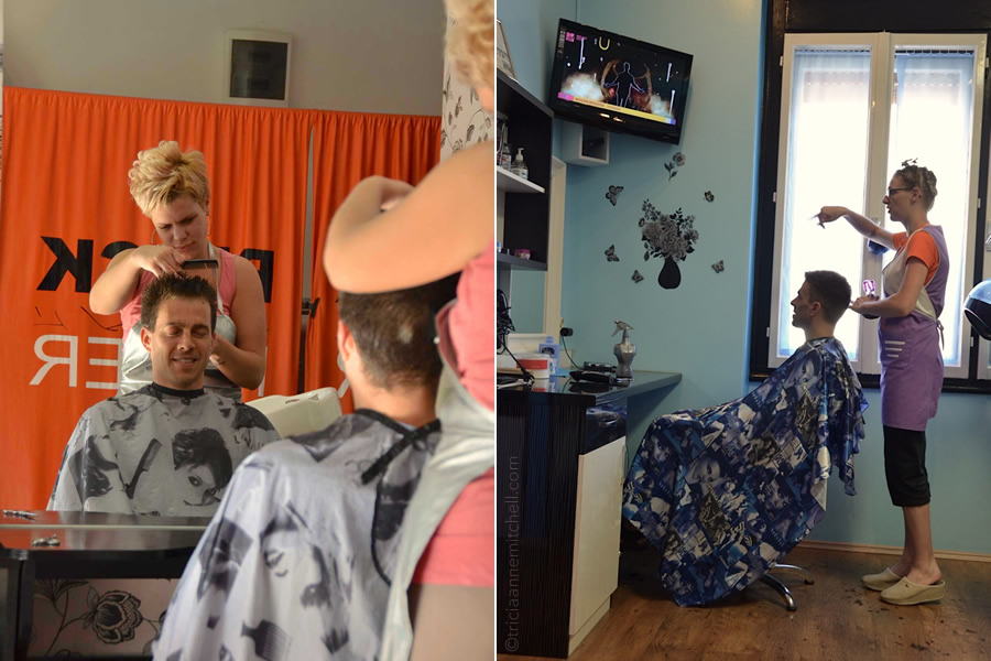 Along the way, we’ve learned how to perfect our miming skills such as the “Please only cut this much off” gesture. We’ve also picked up hair vocabulary like šišanje (Croatia), une coupe (France), and подстригване (Bulgaria).