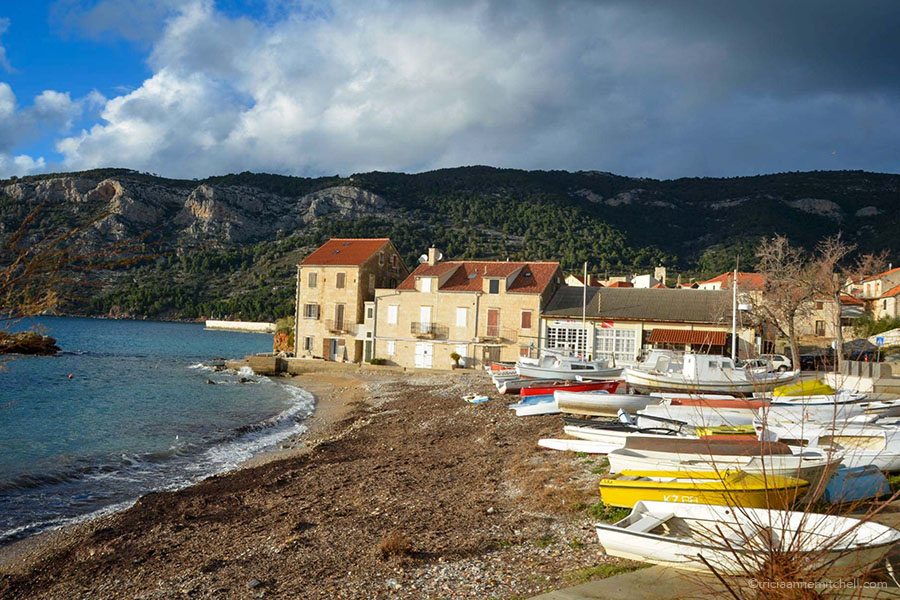 One February, just as the Dalmatia region was starting to come alive again with flowers and warmer weather, we decided to head out to Vis for four nights. Our Croatian friends warned us that Vis would be quiet in February, but that promised solitude only added to its allure! We were craving brilliant sunsets, so we decided to base ourselves in the coastal town of Komiža, which faces the south. Tiny Komiža, which has been a center of fishing activity for centuries, is home to about 1,400 people.