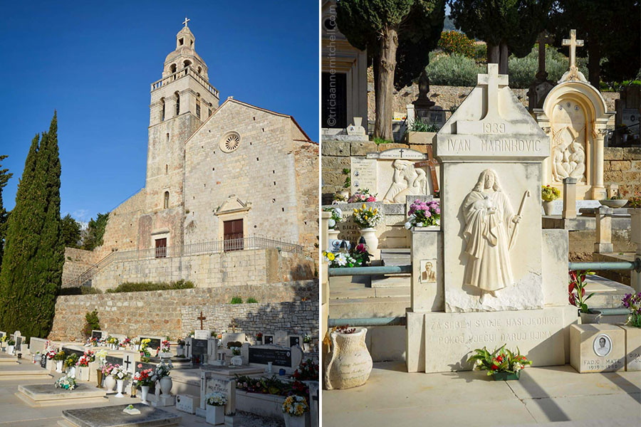 - We walked to the St. Nicholas Church, whose namesake, Saint Nicholas, is the protector of seamen. Every December 6th (St. Nicholas Day), Komiža residents commemorate the saint’s day by burning decrepit wooden fishing boats. As we sat on the white-stone terrace of the church, we looked out at the shimmering Adriatic Sea. We’d brought a flask of coffee and slices of homemade banana bread with us, so we enjoyed a coffee break, too. (If you’re looking for a superb banana bread recipe, be sure to check out Cookie + Kate’s recipe at that link.)