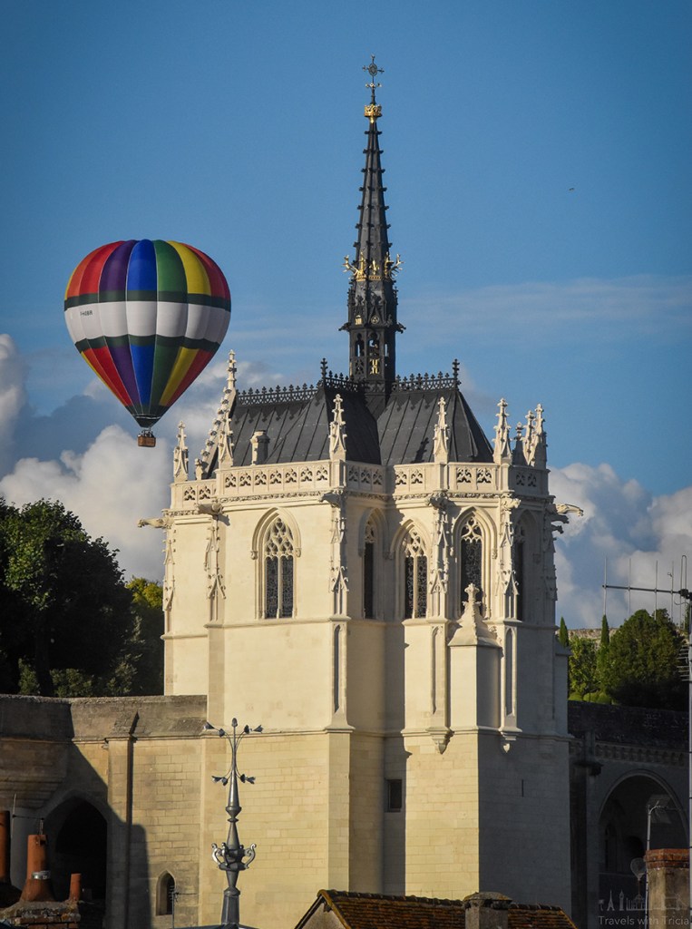 If the weather conditions are just right, the balloons sail over the grounds of the Château Royal d’Amboise, which was once home to King François I, the father of the French Renaissance. In fact, it was François who invited Leonardo da Vinci to live in Amboise. Leonardo spent the last three years of his life in the town, in a manor house called Clos Lucé. Leonardo’s tomb is located in the nearby Saint Hubert Chapel (Chapelle-Saint-Hubert), on the grounds of the Château d’Amboise.