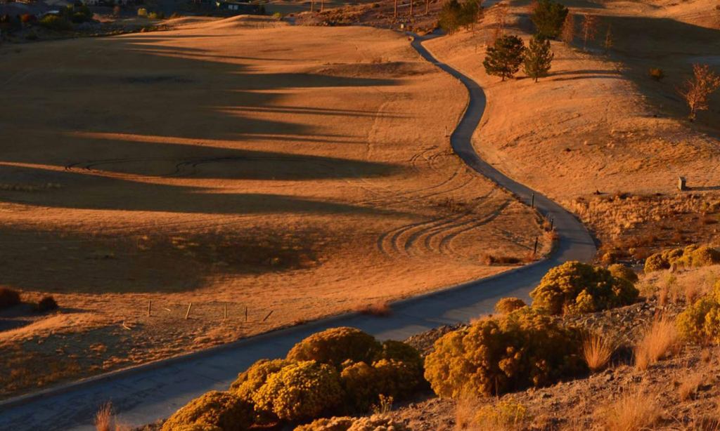 “The golden age is before us, not behind us.” William Shakespeare A sidewalk snakes its way through a field near a residential area in Sparks, Nevada.