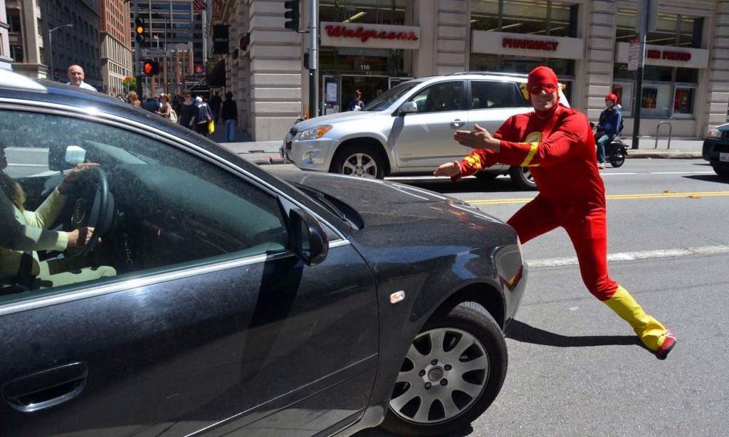 During a recent jaunt to San Francisco, we were attempting to cross the street when a hurried driver came rushing into the crosswalk. In a scene out of a comic book, our hero stopped traffic — much to the chagrin of the motorist. :)