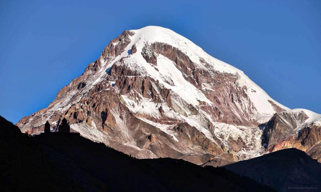 One of the most iconic images from the country of Georgia features the Gergeti Trinity Church dwarfed by immense mountains. This 14th-century church is crowned with cone-shaped towers and is located in the heart of the Caucasus. It’s just a few kilometers from the Russian border.